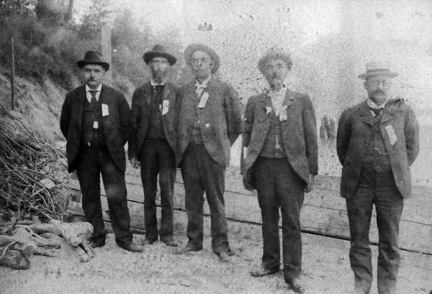 George Sheldon, Allen Sutton, Marshall Hulet, Tom Poole, and Charles P. Chapman, 1900 at Randall's Grove
